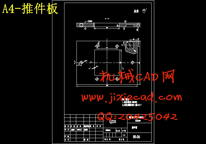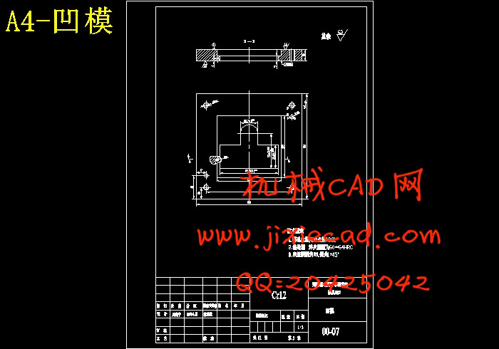 本冲裁件上孔为非规则形状的孔,为了便于冲孔凸模的加工,所以在设计时把冲孔凸模设计成直通式,然后,将其铆接在凸模固定板上。此外,该制件的尺寸较大,为保证凹模的加工精度,在设计时应将其设计成凹模组件。为了方便制件的取出,本副模具采用倒装结构形式,同时,为了简化模具结构采用弹性推件装置。