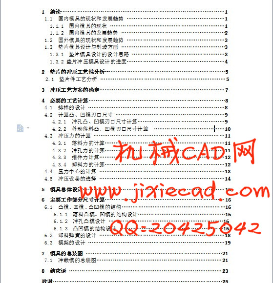 1.3 垫片模具设计与制造方面 …………………………………………………3