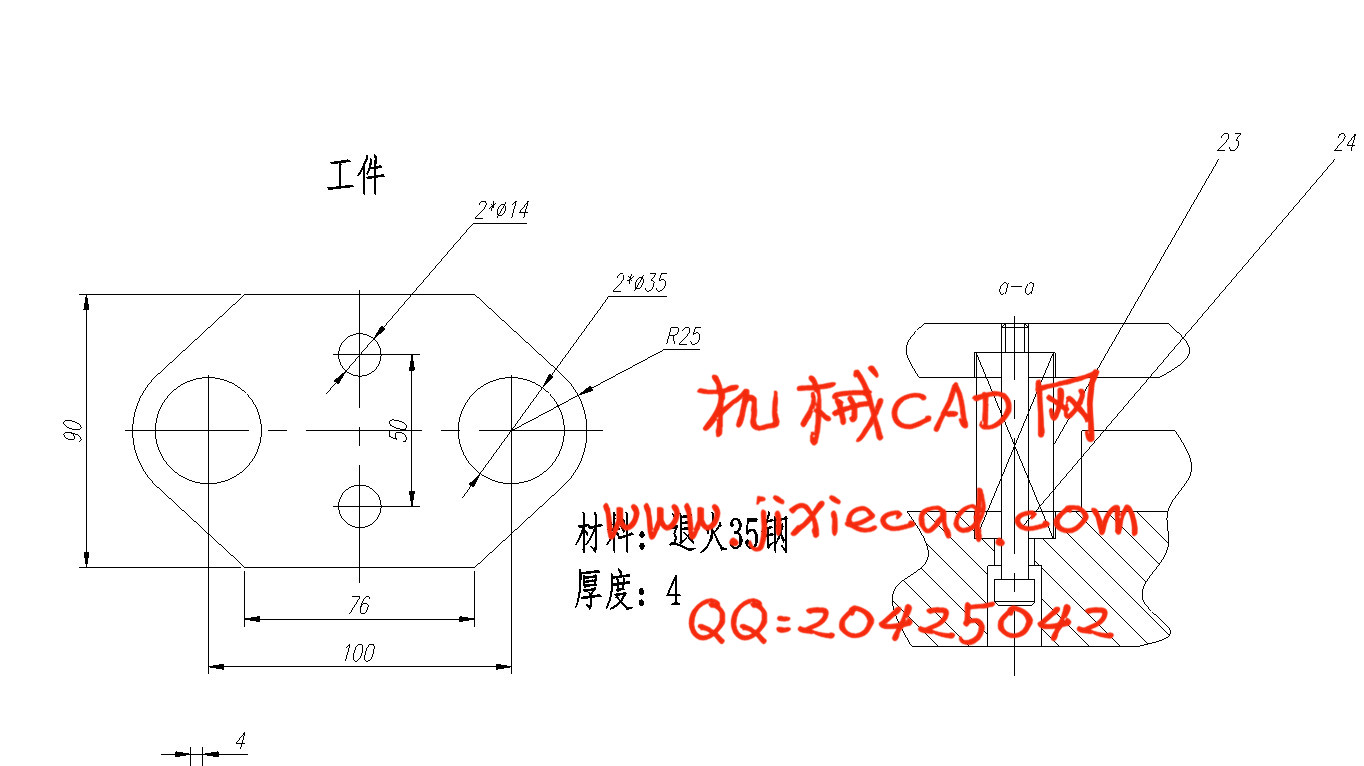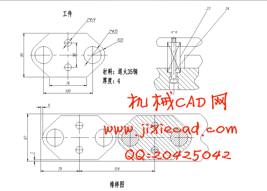 4、冲孔直径35,冲孔直径14,落料外形,级进模冲裁。