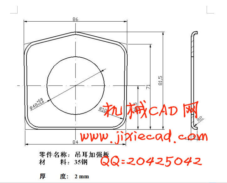 本设计以吊耳加强板零件冲压工艺与冲模设计的全过程,通过审查及工艺分析确定其为单工序模。然后再对此单工序模进行整体设计,在此过程中,凸凹模的设计为一难点,主要的是刃口的计算及定位方式的选择问题,然后再利用得出的数据结合有关的参考资料和图表,对模具的主要零件进行结构设计,最后根据全部零件的结构设计选用合适的模座和模柄,并选用合适的冲压设备,最后,画出冲裁模的总装图和零件图,在绘图过程中,使用的软件为Auto CAD。