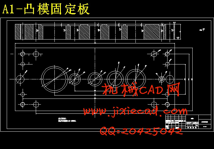 凹模采用整体式凹模,各冲裁的凹模孔均采用线切割机床加工,安排凹模在模架上的位置时要依据计算压力中心与模柄中心重合。