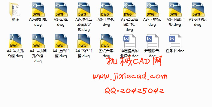 Abstract:The design is a design of compound die about blanking、drawing、punching for oil spill,the completed as follows:giving a brief introduction about the effect of mould in industrial production、development history and current situation of mould、the future development of mould. To determine the reasonable processing plan 、the number of processes 、blank size 、center of pressure and draw the part drawing.To design the positioning parts 、fixed parts and choose fasteners of moldbase marked.Finally,to draw non-standard parts drawing of mould and The 2D assembly drawing by CAD.