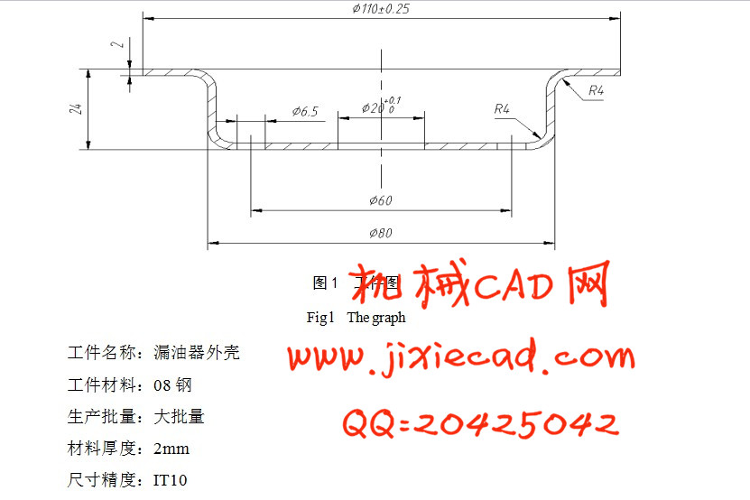 关键词:漏油器外壳;落料;拉深; 冲孔;复合模;
