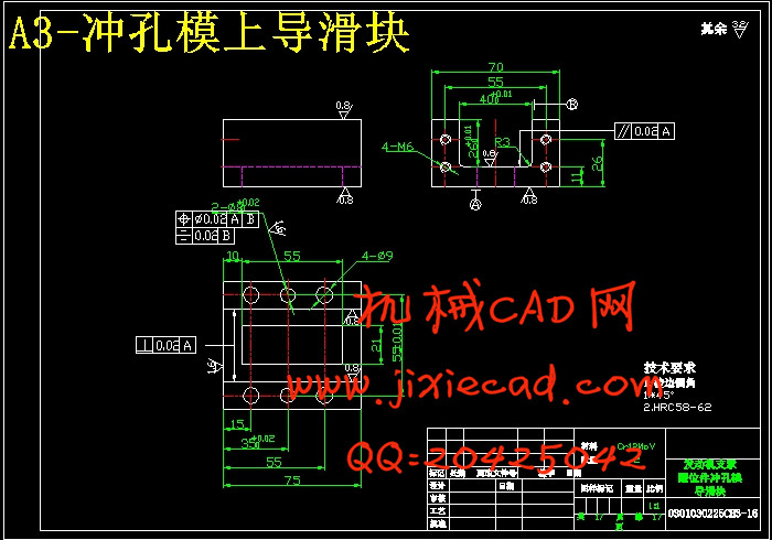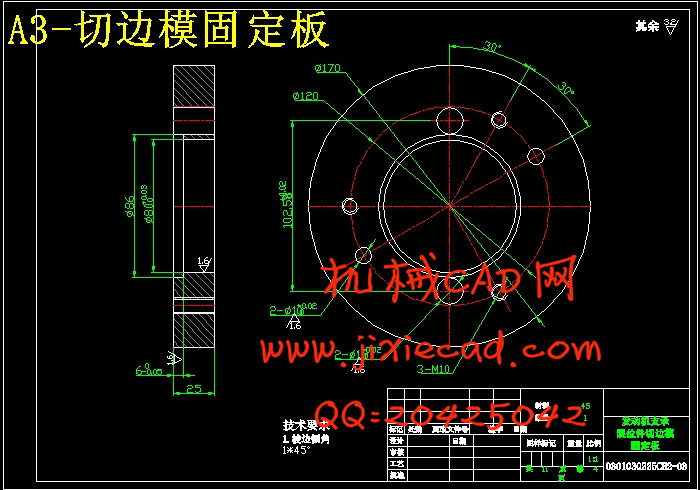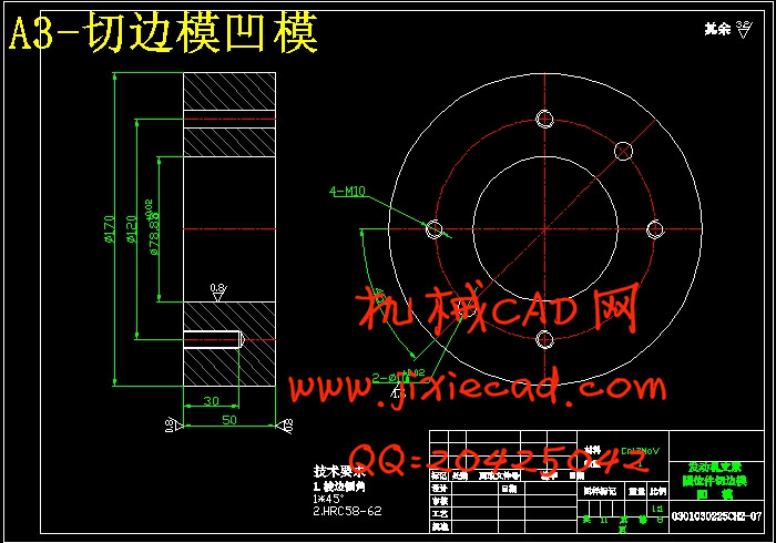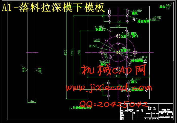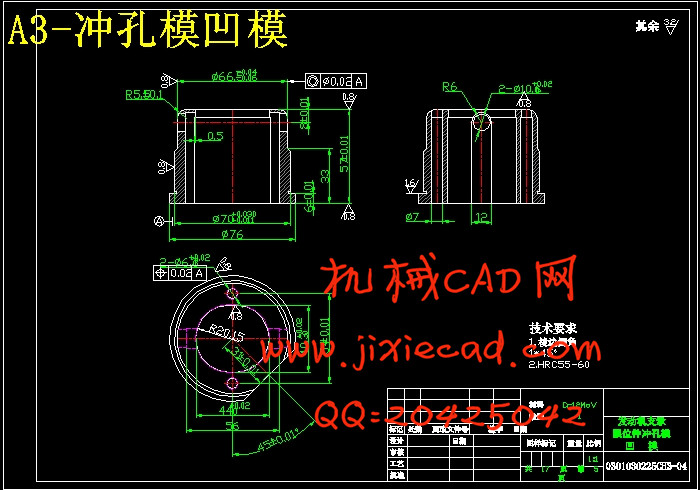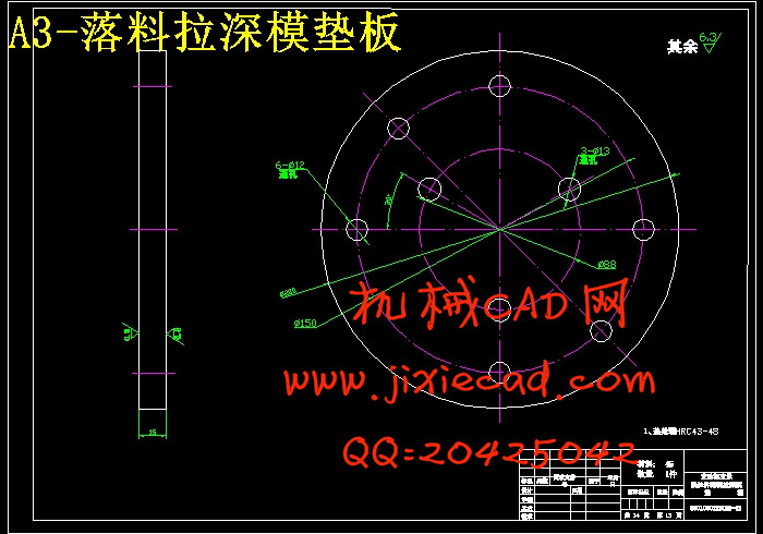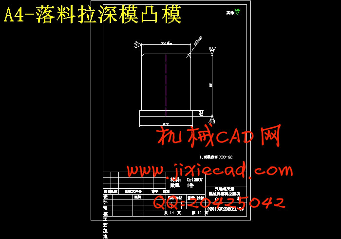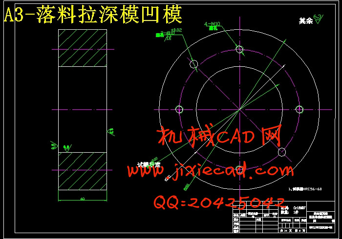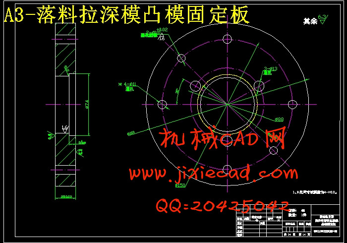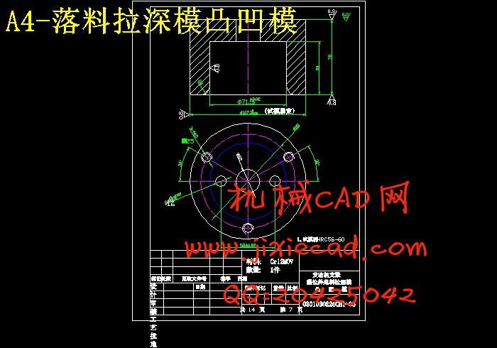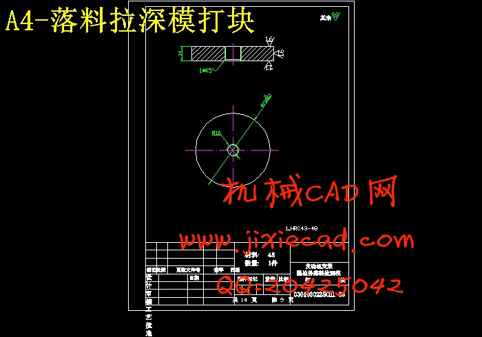 分析比较以上三种方案,可以看出:方案一中各工序都按基本工序做,工序复合程度低,生产效率太低,模具数量也会增加,由此也增加了生产成本;方案三中,虽然解决了一方案中的问题,但是,冲孔凹模与拉深凸模做成一体,这样就给修磨带来的困难,而且孔径一旦发生变化,将会直接影响到拉深质量的好坏;