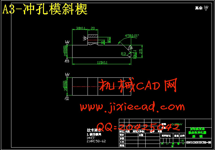 方案二没有上述的缺点,工序复合程度适中,单工序模具结构简单,制造费用低,这在中小批量生产中是合理的,因此决定采用方案二。