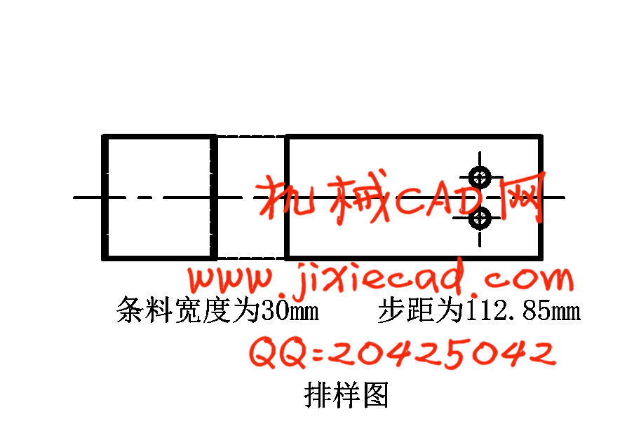 本设计是冲孔、切断、弯曲的级进模具,设计时主要考虑了不同工位之间的距离,以确定毛胚制件的位置及每次进给的距离。同时考虑各个不同工位之间动作的协调一致性及各个工位模具的磨损量。