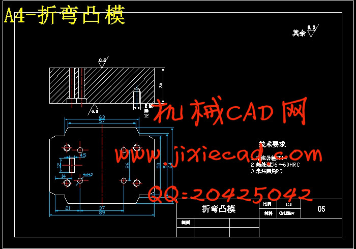 本模具为喂板冲孔弯曲复合模, 在设计时:1 、接受任务书;2 、调研消化原始资料;3 、选择成形设备;4 、拟定模具结构方案;5 、方案的讨论与论证;7 、绘制模具装配图;8 、绘制零件图;9 、编写设计说明书;10 、模具制造试模与图纸修改。正确的确定模具成形零件的尺寸。冲孔凸模、落料凹模、凸凹模等零件是确定制件形状、尺寸和表面质量的直接因素,关系甚大,要特别注意。模具的设计应制造方便, 尽量做道使设计的模具制造容易、造价便宜。特别是比较复杂的成形零件,必须考虑是采用一般的机械加工方法加工还是采用特殊的加工方法加工。模具的设计应当效率高、安全、可靠。模具零件应耐磨耐用。