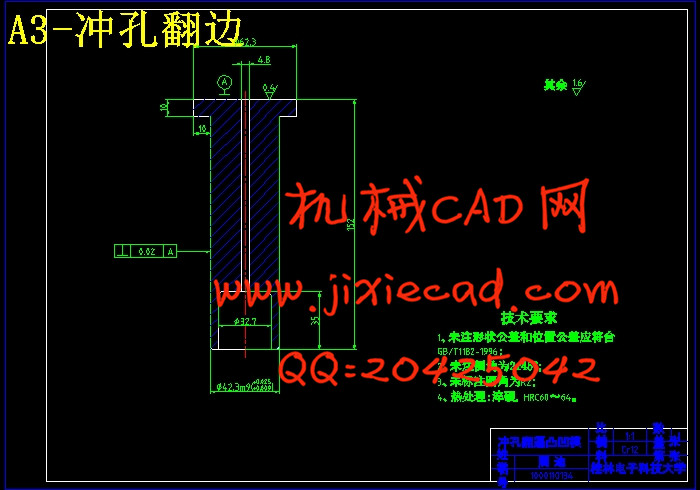 关键词:模具;冲压;拉深;翻孔;翻边;CAD画图
