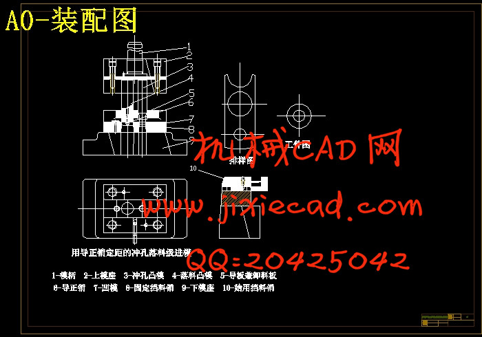 冲压是塑性加工的基本方法之一。冲压是在室温下,利用安装在压力机上的模具对材料施力,使其产生分离或塑性变形,从而获得所需零件的一种压力加工方法。级进模具的优点有:冲压件质量稳定,尺寸精度高,生产率高,成本低材料利用率高易得到复杂制件。