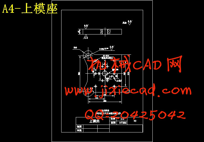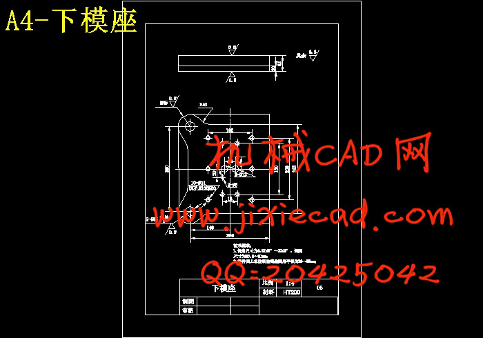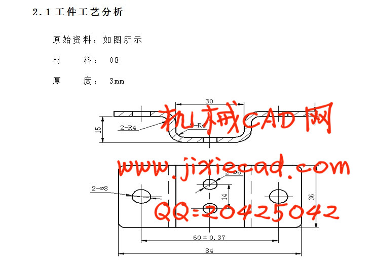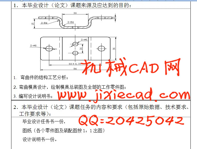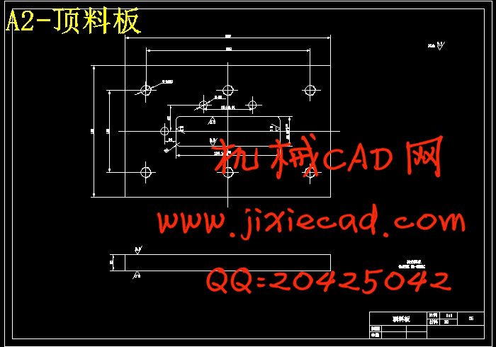 本模具的特点是推板在弹顶器,顶杆的作用下,处于最上位置,定位板固定坯料,上模部分下降,利用凸凹模和成形推板进行弯曲,上模继续下降,推动成形推板下降,此时由落料凹模,在成形推板内装有6根顶杆,开模时可使工件抬起,便于取件.