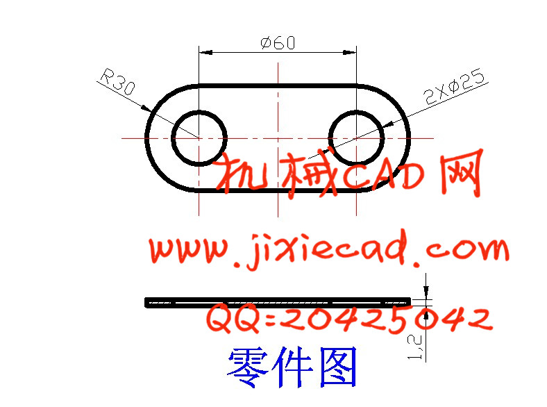 零件结构简单对称,无尖角,对冲裁加工较为有利。零件有一对对称的孔,孔的尺寸为25mm,满足冲裁最小孔径