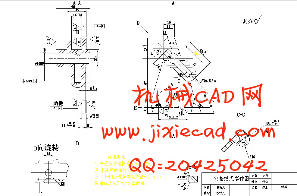 I倒挡/倒档拨叉机械加工工艺规程和夹具课程设计【钻φ8.7孔】【无说明书】