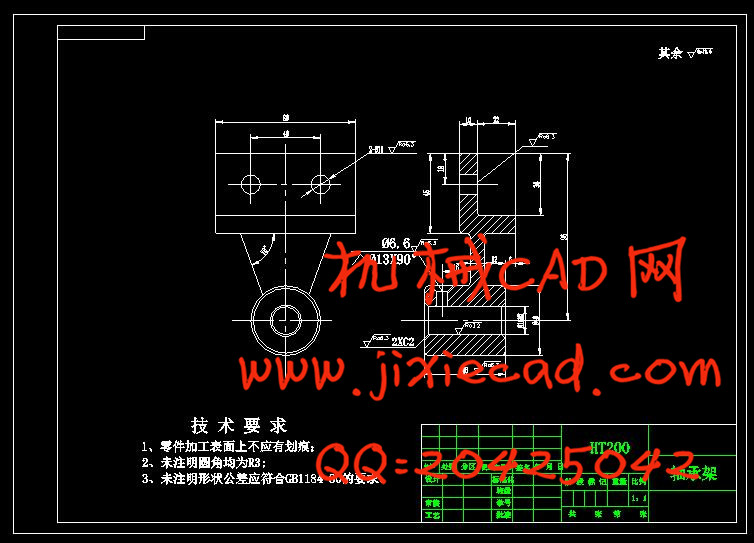 本设计轴承架零件加工过程的基础设计的钻孔夹具设计。主要加工部位是平面和孔加工。在一般情况下,确保比保证精密加工孔很容易。因此,设计遵循的原则是先加工面后加工孔表面。在零件的夹具设计中,主要是根据零件加工工序要求,分析应限的自由度数,进而根据零件的表面特征选定定位元件,再分析所选定位元件能否限定应限自由度。确定了定位元件后还需要选择夹紧元件,最后就是确定专用夹具的结构形式。关键词:轴承架零件;钻孔;工艺;夹具;