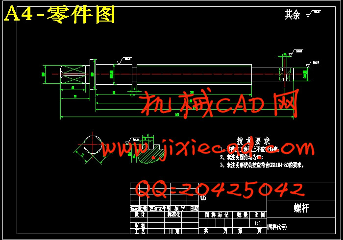 本设计是基于螺杆零件的加工工艺规程及一些工序的专用夹具设计。螺杆零件的主要加工表面是外圆及孔系。一般来说,保证平面的加工精度要比保证孔系的加工精度容易。因此,本设计遵循先面后槽的原则。并将孔与平面的加工明确划分成粗加工和精加工阶段以保证孔系加工精度。主要加工工序安排是先以支承孔系定位加工出顶平面,在后续工序中除个别工序外均用顶平面和工艺孔定位加工其他孔系与平面。夹具选用专用夹具,夹紧方式多选用手动夹紧,夹紧可靠,机构可以不必自锁。因此生产效率较高。适用于大批量、流水线上加工。能够满足设计要求。关键词:螺杆类零件;工艺;夹具;
