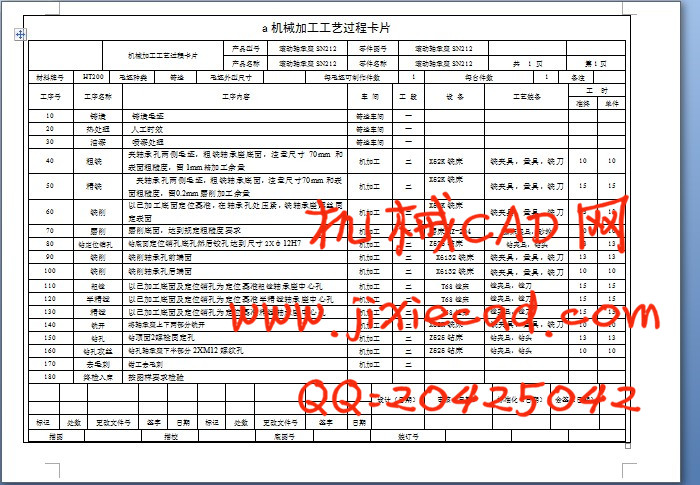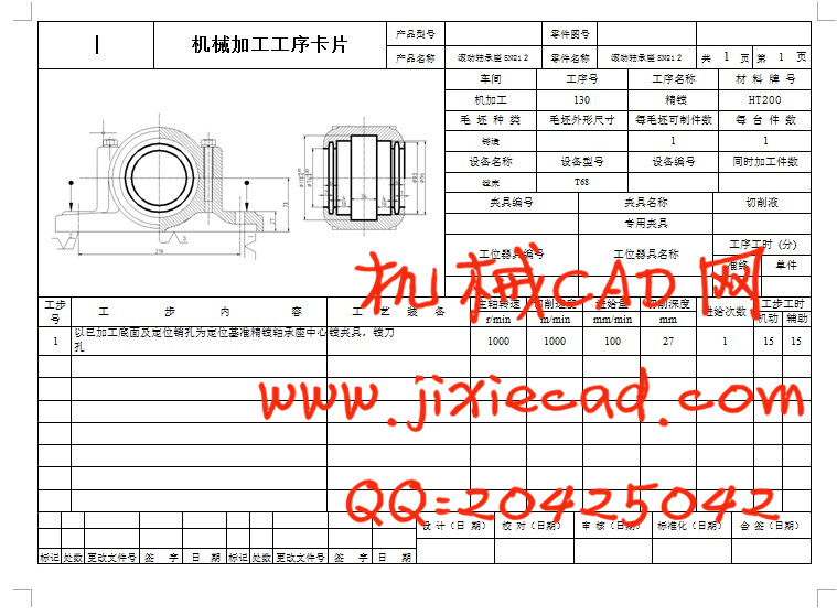 关键词:滚动轴承座SN212,加工工艺,加工方法,工艺文件,夹具