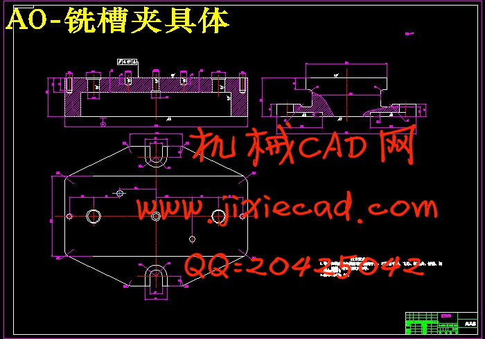 目 录本设计是基于凹形侧支承板工零件的加工工艺规程及一些工序的专用夹具设计。凹形侧支承板工零件的主要加工表面是端面及孔系。一般来说,保证平面的加工精度要比保证孔系的加工精度容易。因此,本设计遵循先面后孔的原则。并将孔与平面的加工明确划分成粗加工和精加工阶段以保证孔系加工精度。夹具选用专用夹具,夹紧方式多选用手动夹紧,夹紧可靠,机构可以不必自锁。因此生产效率较高。适用于大批量、流水线上加工。能够满足设计要求。
