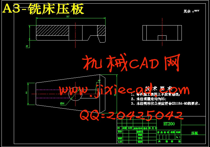 在零件的夹具设计中,主要是根据零件加工工序要求,分析应限的自由度数,进而根据零件的表面特征选定定位元件,再分析所选定位元件能否限定应限自由度。确定了定位元件后还需要选择夹紧元件,最后就是确定专用夹具的结构形式。