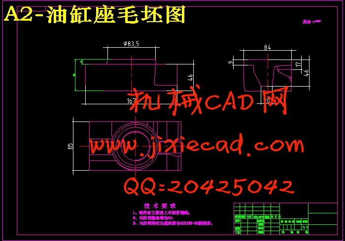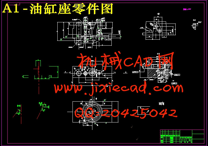 油缸座的加工工艺及夹具的设计,其中包括零件加工的工艺设计,工序的设计,以及专用夹具的设计一共三部分。众所皆知,我们在工艺设计中要必须首先去对零件进行仔细的分析,了解它的工艺,然后再设计出毛坯的结构,同时选择好零件的加工基准并设计出零件的工艺路线,接下来,我们要对零件的各个工步工序进行尺寸计算,主要是决定出每个工序的工艺装备和它的切削用量,再接着进行专用夹具的设计,对夹具的各个组成部件进行设计,比如定位元件,夹紧元件,引导元件,夹具体,机床的连接部件和其它的部件,同时我们要计算好夹具定位时产生的误差以及分析好夹具结构的好与坏,在以后的设计中要改进。关键词为:切削用量,误差,工艺,夹紧,工序,定位,
