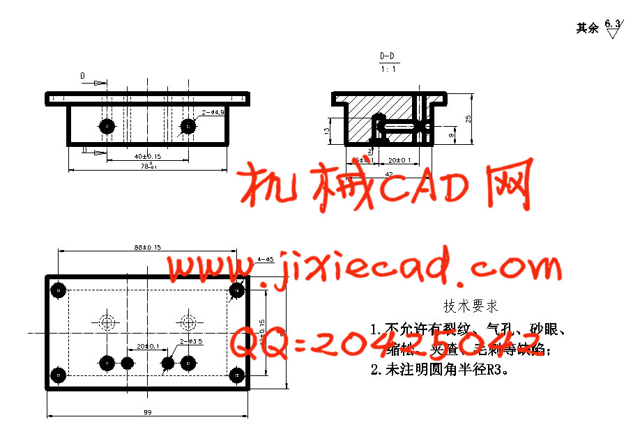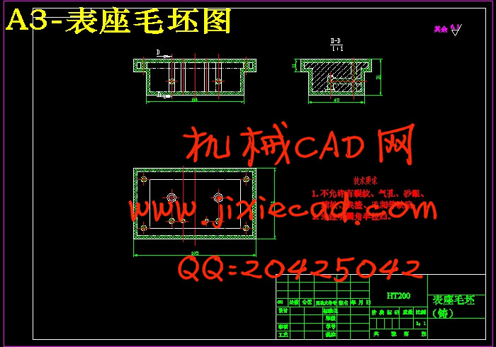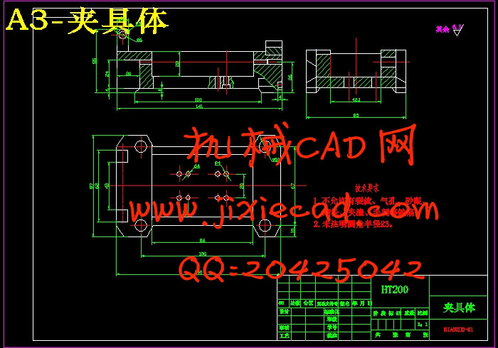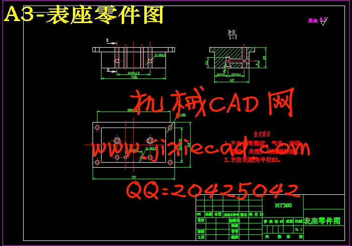表座零件加工工艺及钻床夹具设计是包括零件加工的工艺设计、工序设计以及专用夹具的设计三部分。在工艺设计中要首先对零件进行分析,了解零件的工艺再设计出毛坯的结构,并选择好零件的加工基准,设计出零件的工艺路线;接着对零件各个工步的工序进行尺寸计算,关键是决定出各个工序的工艺装备及切削用量;然后进行专用夹具的设计,选择设计出夹具的各个组成部件,如定位元件、夹紧元件、引导元件、夹具体与机床的连接部件以及其它部件;计算出夹具定位时产生的定位误差,分析夹具结构的合理性与不足之处,并在以后设计中注意改进。关键词:工艺,工序,切削用量,夹紧,定位,误差