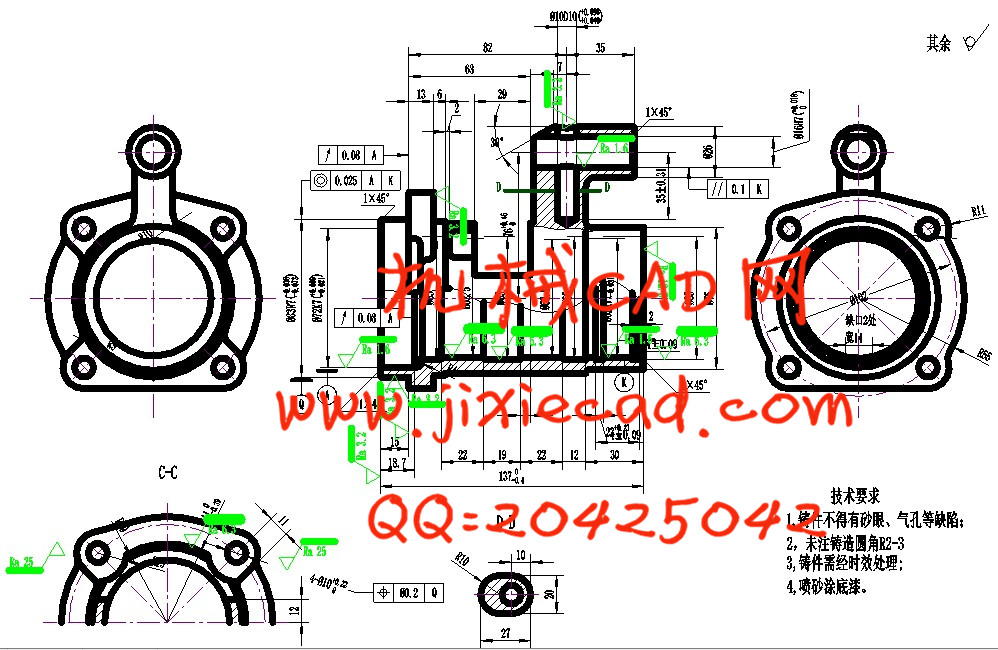 The flange parts processing technology and fixture design is the design of process design, including the parts processing process design and the three part special fixture. In the process of design should first of all parts to analyze, understand parts of the process and then design a blank structure, and choose the good parts of the machining datum, designs the process routes of the parts; then the parts each step process dimension calculation, the key is to determine the process equipment and cutting the amount of each working procedure design; then a special fixture, fixture for the various components of a design, such as the connecting part positioning device, clamping element, a guide element, clamp and the machine tool and other components; the positioning error caused calculate fixture when positioning, analysis of the rationality and deficiency of fixture structure, pay attention to improving and will design in.Keywords: process, process, cutting, clamping, positioning,