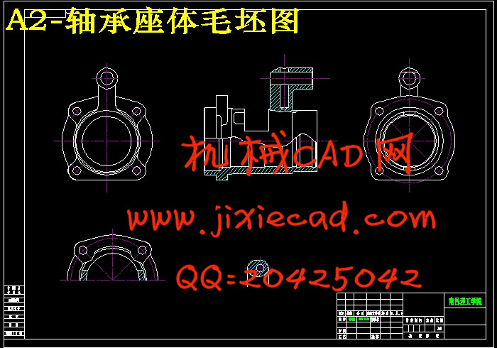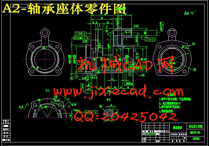 轴承座体零件加工工艺及夹具设计是包括零件加工的工艺设计、工序设计以及专用夹具的设计三部分。在工艺设计中要首先对零件进行分析,了解零件的工艺再设计出毛坯的结构,并选择好零件的加工基准,设计出零件的工艺路线;接着对零件各个工步的工序进行尺寸计算,关键是决定出各个工序的工艺装备及切削用量;然后进行专用夹具的设计,选择设计出夹具的各个组成部件,如定位元件、夹紧元件、引导元件、夹具体与机床的连接部件以及其它部件;计算出夹具定位时产生的定位误差,分析夹具结构的合理性与不足之处,并在以后设计中注意改进。关键词:工艺,工序,切削用量,夹紧,定位,误差