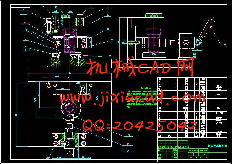 Set of parts machining technology and the design of drilling jig design, including design process is machining process design and the three part special fixture. In the process of design should first of all parts to analyze, understand parts of the process and then design a blank structure, and choose the good parts machining datum, designs the process routes of the parts; then the parts of each step process dimension calculation, the key is to determine the process equipment and cutting the amount of each working procedure; design then a special fixture, fixture for the various components of the design, such as the connecting part positioning device, clamping device, a guide element, clamp and the machine tool and other components; the positioning error generated when calculate fixture positioning, analysis of the rationality and deficiency of fixture structure, pay attention to improving and will design in.