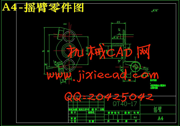 摇臂零件加工工艺及钻床夹具设计是包括零件加工的工艺设计、工序设计以及专用夹具的设计三部分。在工艺设计中要首先对零件进行分析,了解零件的工艺再设计出毛坯的结构,并选择好零件的加工基准,设计出零件的工艺路线;接着对零件各个工步的工序进行尺寸计算,关键是决定出各个工序的工艺装备及切削用量;然后进行专用夹具的设计,选择设计出夹具的各个组成部件,如定位元件、夹紧元件、引导元件、夹具体与机床的连接部件以及其它部件;计算出夹具定位时产生的定位误差,分析夹具结构的合理性与不足之处,并在以后设计中注意改进。关键词:工艺,工序,切削用量,夹紧,定位,误差