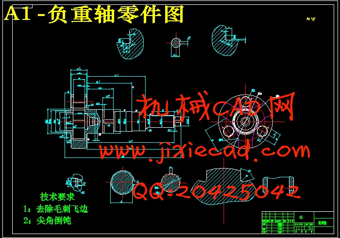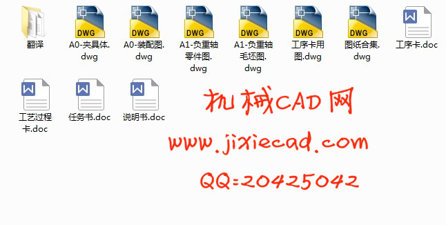 负重轴零件加工工艺及专用夹具设计是包括零件加工的工艺设计、工序设计以及专用夹具的设计三部分。在工艺设计中要首先对零件进行分析,了解零件的工艺再设计出毛坯的结构,并选择好零件的加工基准,设计出零件的工艺路线;接着对零件各个工步的工序进行尺寸计算,关键是决定出各个工序的工艺装备及切削用量;然后进行专用夹具的设计,选择设计出夹具的各个组成部件,如定位元件、夹紧元件、引导元件、夹具体与机床的连接部件以及其它部件;计算出夹具定位时产生的定位误差,分析夹具结构的合理性与不足之处,并在以后设计中注意改进。