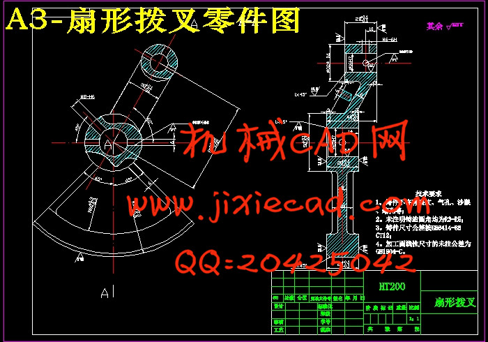 扇形拨叉零件加工工艺及钻床夹具设计是包括零件加工的工艺设计、工序设计以及专用夹具的设计三部分。在工艺设计中要首先对零件进行分析,了解零件的工艺再设计出毛坯的结构,并选择好零件的加工基准,设计出零件的工艺路线;接着对零件各个工步的工序进行尺寸计算,关键是决定出各个工序的工艺装备及切削用量;然后进行专用夹具的设计,选择设计出夹具的各个组成部件,如定位元件、夹紧元件、引导元件、夹具体与机床的连接部件以及其它部件;计算出夹具定位时产生的定位误差,分析夹具结构的合理性与不足之处,并在以后设计中注意改进。关键词:工艺,工序,切削用量,夹紧,定位,误差