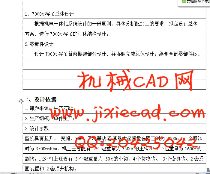 The design of the whole 7000t floating crane and the shelf