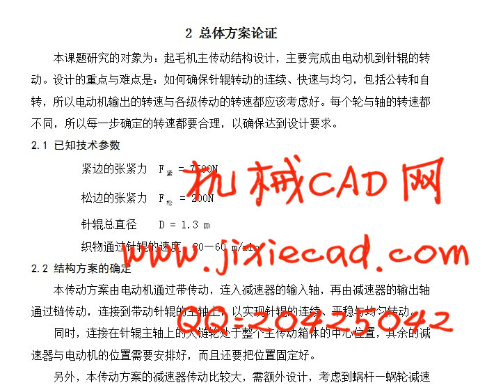 关键词:起毛机;结构设计;主传动设计;减速器设计