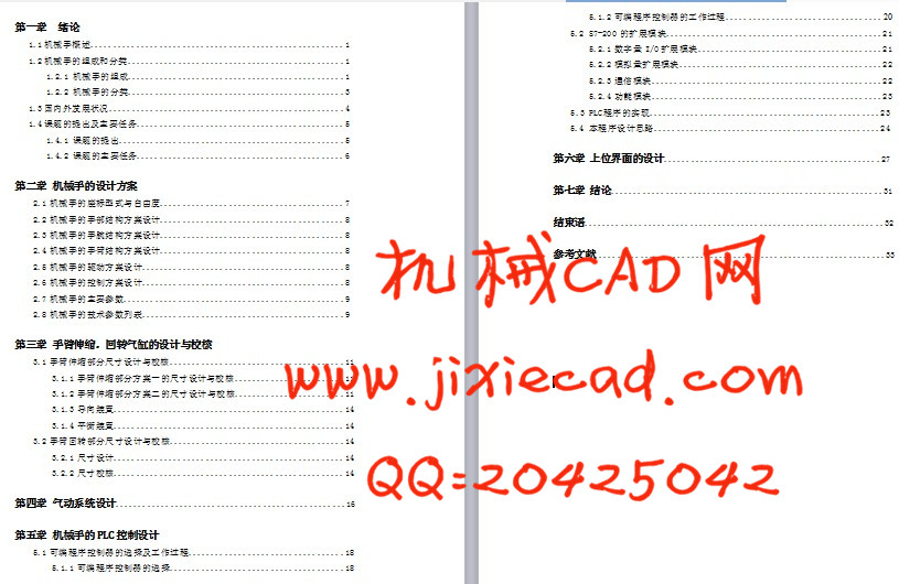 本文简要介绍了机器人的概念,机械手的组成和分类,机械手的自由度和坐标形式,气动技术的特点,PLC控制的特点及国内外的发展状况。