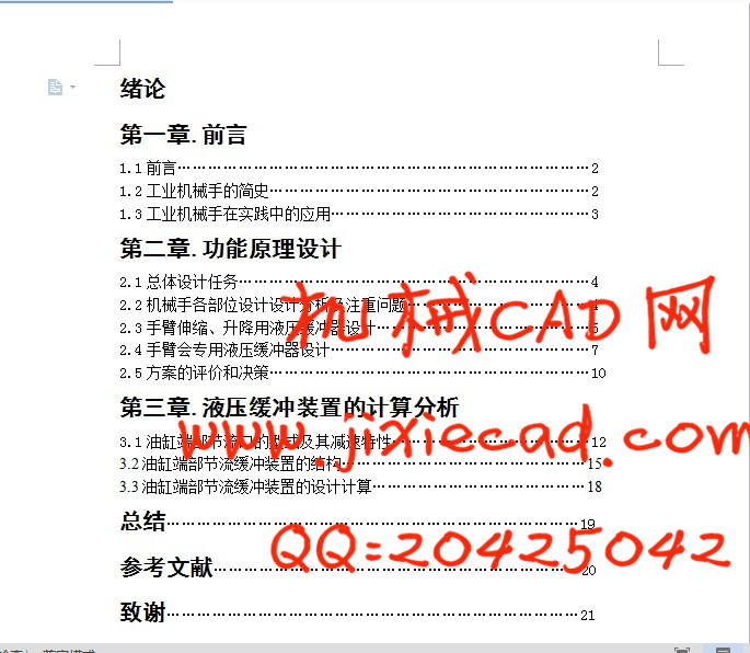 2.4手臂会专用液压缓冲器设计……………………………………………7