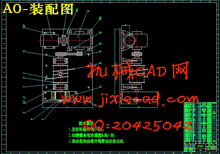 通过舞台伸缩的最佳速度8m/min,选择相匹配的电动机与减速器,并通过对槽轮的设计使舞台达到速度要求,从而依据完成主轴的设计。选择合理的传动机构(钢丝绳传动)实现舞台平稳传动。并注意舞台传动机构与拖动机构相匹配,共同达到舞台设计要求。