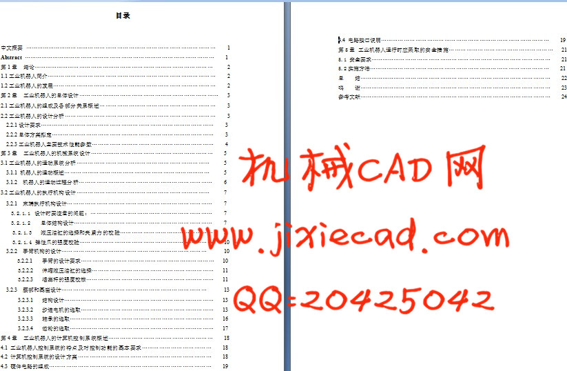 在工业上,自动控制系统有着广泛的应用,如工业自动化机床控制,计算机系统,机器人等。而工业机器人是相对较新的电子设备,它正开始改变现代化工业面貌。实际的机器人由带有腕(或称为手臂)的主机身和机身端部的工具(通常是某些类型的夹持器)组成,同时也包括一个辅助动力系统。本文是对整个设计工作较全面的介绍和总结。