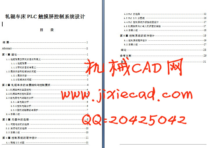 Key words: Roll lathe; PLC; touch screen; ladder ;Configuration