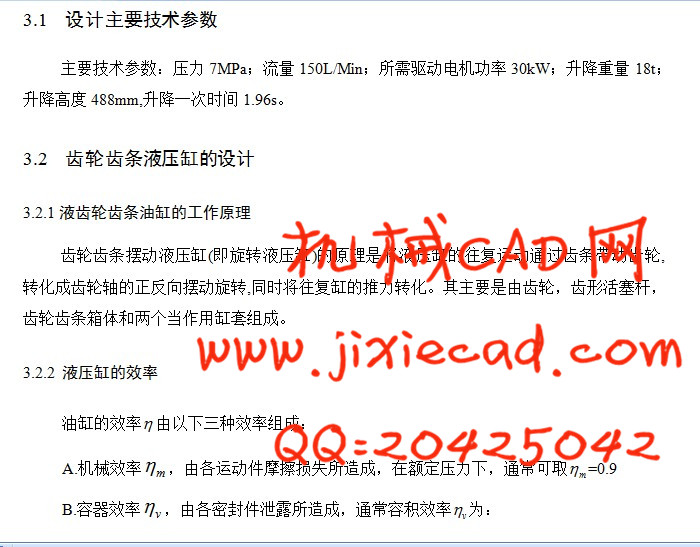 Keywords: hydraulic lifting platform, the gear rack cylinder, hydraulic system