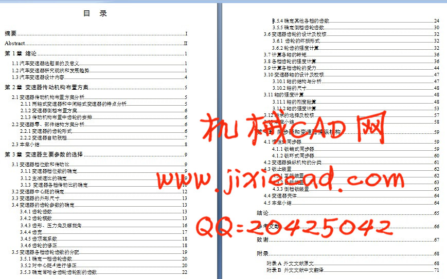 Transmission by transmission transmission mechanism and control mechanisms, its basic function is composed rotation, expand drive change transmission torque and speed range change, in order to adapt to the changes often, and make the engine driving conditions in favorable conditions work; In engine crankshaft direction invariable premise that car can drive backward; Use neutral interrupt power transfer to make the engine can start, idle, and facilitate the transmission shift or power output. The transmission of the structure of the power, request car fuel economy and shift reliability and manipulation of portability, transmission stability and efficiency to wait to have direct influence.Using the transmission oart type transmission with two prominent advantages: one is the direct transmission of high transmission efficiency, wear and noise also is the minimum; Second, in the gear center distance is smaller still can acquire larger gear transmission. This paper studies the design manual shift transmission oart in five, its main purpose is based on mechanical principle, mechanical design, good use AutoCAD and master knowledge, and using this automobile structure, automobile design, material mechanics, interchangeability measurements to discipline knowledge, all the parts of the transmission oart in design, and using AutoCAD software rendering drawings and parts graph, etc. First, this paper will outline the present situation and developing trend of the transmission. Secondly, it is elaborated, principle of work of different variable speed .