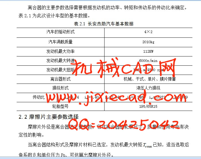This article according to the Chang'an JieXun performance parameters of the car, identified as a design goal to push the diaphragm spring clutch. According to push the diaphragm spring clutch work principle and application requirements, determines the basic structure of the parts and components manufacturing materials. Ascertained in accordance with systematic design method of the clutch friction plate diameter d, reserve coefficient β, pressure p, f, the number of friction surface friction coefficient z and clutch gap Δt, design the diaphragm spring, clutch driven plate Assembly, clutch cover Assembly and separation control, checking the temperature rise of the pressure plate, checking the friction of sliding friction.