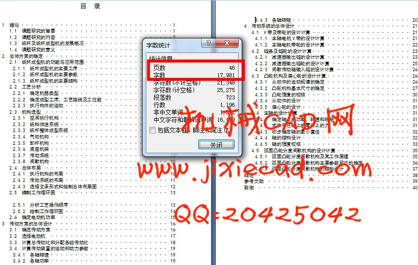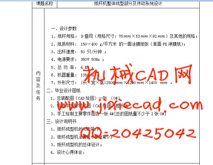 The automatic paper cup forming machine through the automatic document feeder, red at the end of sealing, heating, over at the end of Knurling, curling, continuous processes, such as dumping cups of finished paper produced. The main design of the cup design and the transmission part of the overall shape of the cups of some of the major, including heating, rolling and crimping spending, as well as the shape of the cup and disposed of blanking processes Cup. Paper cup forming machine of this part of the action, mainly through a typical linkage, chain transmission, belt transmission, cam mechanisms, intermittent institutions agencies to complete. The design will be followed by paper cup machine for the determination of the overall program, through the production of paper machine process analysis, to select the institutions and the overall layout, and on this basis the overall design, as well as gear design and calculation of transmission components, mainly of the V belt, chain, sprocket, cam, eccentric wheel, spindle, cam Globoidal intermittent indexing agencies to conduct a detailed design calculation. The design principle of the paper cup machine, introduced in more detail and to determine its main parameters and structures.