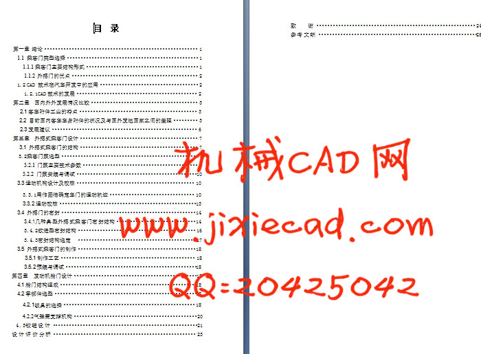 本文为中型客车的外摆式乘客门和行李舱门的设计。分析了外摆式乘客门和行李舱门的结构和工作原理,确定其各部分的尺寸及主要零部件的选型及安装。讨论了国内外汽车附件工业发展的情况比较。AUTOCAD软件是当今世界上一种主流的设计软件之一。在本设计中应用了AUTOCAD软件制作乘客门和行李舱门。