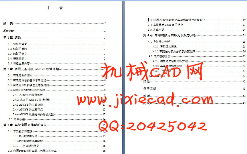 关键词:中型载货汽车;车架;ANSYS;静力分析;模态分析