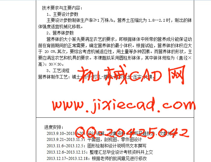 New earthen bowl machine ,which is designed in this text ,is used to produce the seedling bowl ,which is very popular in the agricultural produce .The seedling bowl is made as a cylinder by the nutritional soil ,which consists of all kinds of fertilizer .And there is a cave pit in the top of the bowl , which is the very hole we put the seedling in .Growing and transplanting the seeds in this bowl can make sure the seeds have enough time and nutrition to grow with ,high germination rate ,high survival rate ,strong and anti-pest.
