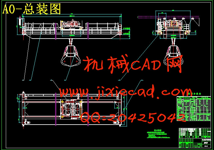 The main structure and its action of bridge waste handling grab crane are designed. Trolley and the bridge truck driving system and the bridge were optimized to alleviate crane weight, and make compact structure. The design adopts the method of being separately driven and being driven together, according to the different requirements of trolley and bridge truck. Driving systerm is made up of braker, reducer and motor, which is the type of three in one. The design focuses on the choice of finished parts, and according to its characteristics and technical parameters, the matching trolley frame is selected. The selection and check of hoist motor, reducer and braker are made. And then the design and check of the rope and drum that meet with requirements of lifting weight and the rate. And then achieve to initial working level. Bridge adopts bias-rail box-beams, the benefits of this design not only is effective in reducing the overall crane weight, but also can increase the stiffness of bridge, which make bright not to deform easily, extend the life of the crane.Key words Bridge Waste Handling Grab Crane;Optimum Design;Three-in-one Type Driving;Lifting Mechanism;Bias-rail Box-beams