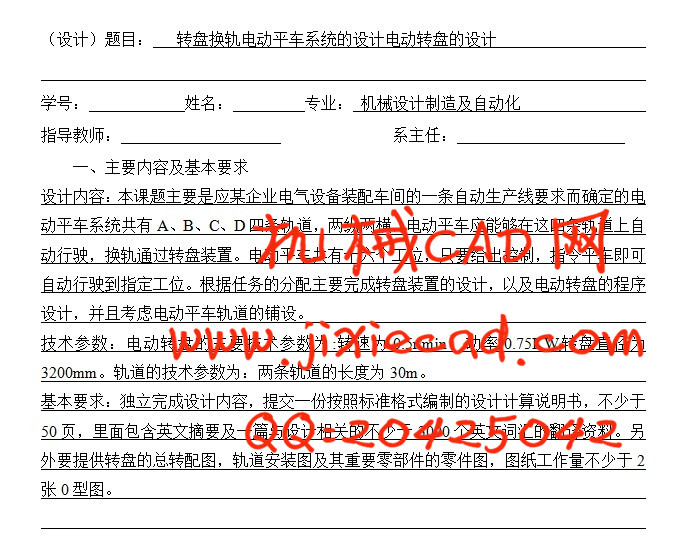 关 键 词: 转盘换轨平车系统 电动转盘 设计
