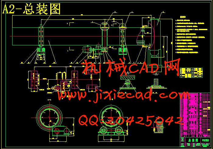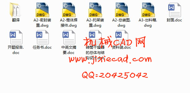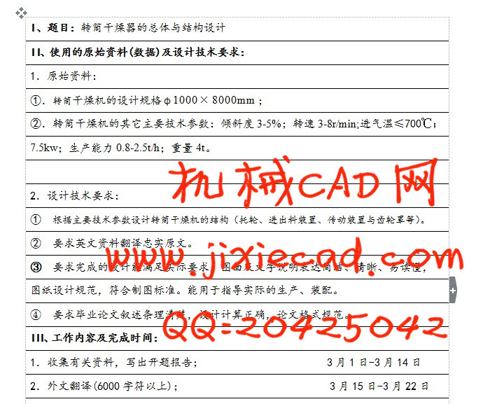 设计的主体部件是1000×8000mm规格的转筒部分,筒的转动依靠齿轮带动,筒的重量主要由两个托轮支撑,而托轮则由两个轴承支撑,抄板翻动物料。