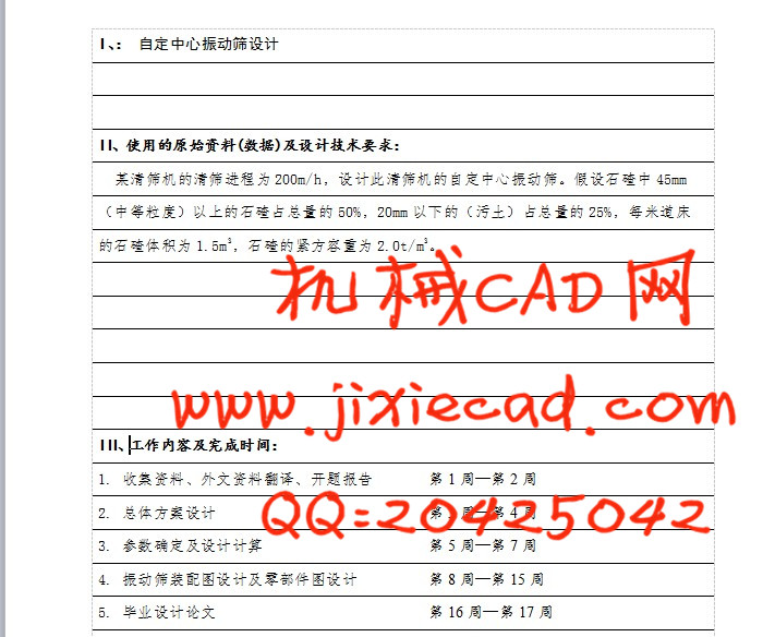 Operations. Its reliable, efficient screening, but their heavy equipment. Design analysis on the design options, including the classification and shaker features and design programmes to be confirmed; materials on the movement of the shaker and the dynamics of the parameters, to design the structure of vibrating screen size; conduct The eccentric block of the exciter, such as design and calculation, including the original design parameters, motor design and verification; were the main components of the design and calculation, belts and check the design and calculation, the design of spring, the axis of Strength, the choice of bearings and calculation and then proceed to the maintenance of equipment, installation, lubrication and seal the design, a shaker final environmental and economic analysis.