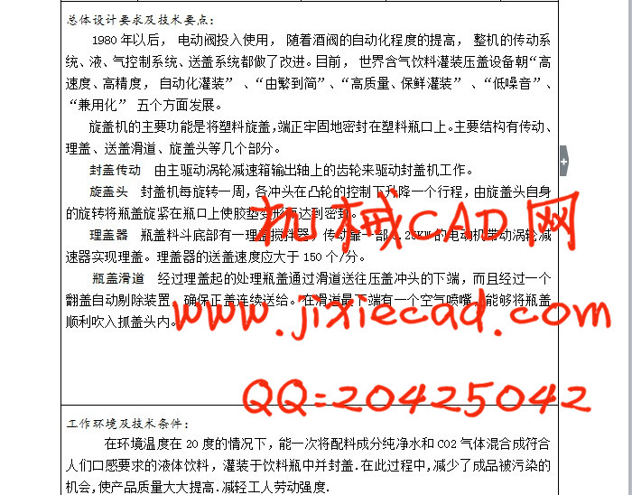 Capping mechanism cover system as an important part of the capping machine, its role is to be disorderly deposits crown cap for rapid collation and sort and accurate transmission to the capping position, its cover sorting accuracy and speed affects directly the filling production line output. This paper introduces the design of the cover, and then describes the design, the glide path,after the positive cover output reverse cover retaining back problems, and the cover cap continuous to automatic elimination problems is improved. Finally, the summary of the article. Capping mechanism cover system as an important part of the capping machine, its role is to be disorderly deposits crown cap for rapid collation and sort and accurate transmission to the capping position, its cover sorting accuracy and speed affects directly the filling production line output. This paper introduces the design of the cover, and then describes the design, the glide path,after the positive cover output reverse cover retaining back problems, and the cover cap continuous to automatic elimination problems is improved. Finally, the summary of the article.