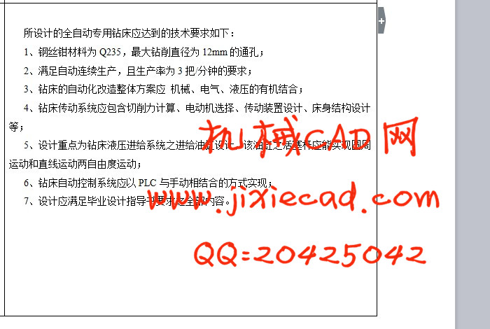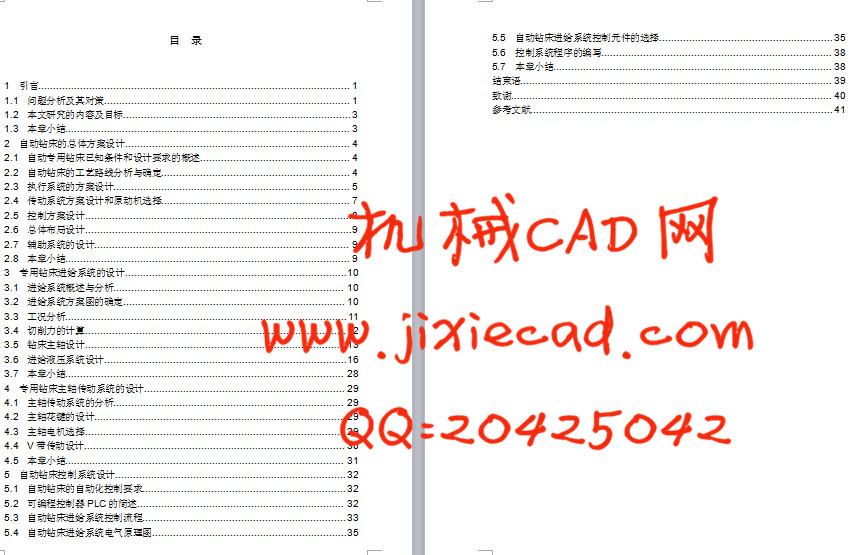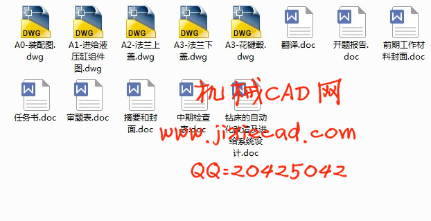 本文设计的重点在于进给系统液压缸的设计和PLC控制系统的设计。进给液压缸系统的设计主要包括液压缸结构设计和控制油路的设计;PLC控制系统设计主要是根据工作要求和控制需要,选择电气元件和编写控制程序来实现对自动钻床的控制。