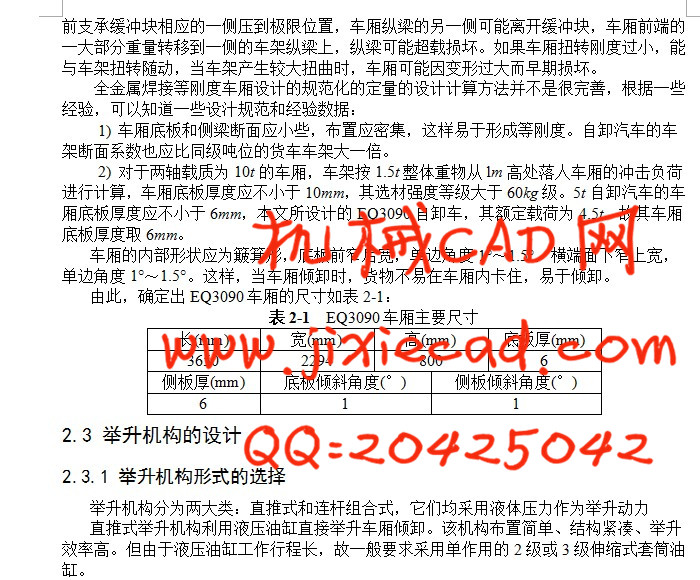 Since last year, our country Special Purpose Vehicle industry is in the boom, with 395 car refit enterprise all around the country refitting 230.6 thousand cars, selling 230.5 thousand. auto unload vehicle the 27125 car, account for 11.76% of total deal. along with the development of local foundation facilities, in recent years auto unload vehicle yield has been keeping in higher production & sales, remains in the first place in Special Purpose Vehicle production. However, in aspects of category, pattern, material application, compared with foreign countries there is still a long way to go. In this paper, firstly, I made a general about the auto unload vehicle design and its development domestic and abroad. Then, at the point of compartment, rising organization etc, I started the design of the EQ3090 auto unload vehicle. Also, I refit and designed the vice-car stalk. To whole EQ3090 the lading quantity, reorganization quantity, measure, tread, wheelbase, forward suspension behind,proceeded the related calculation and design.